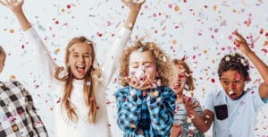 Kids in a room full of confetti