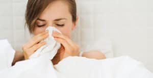 Woman with flu laying in bed